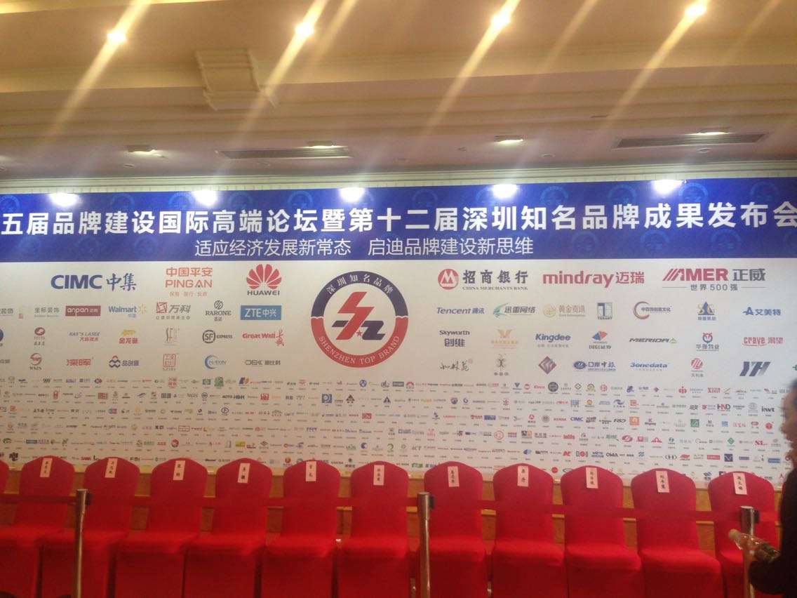 用產品贏得市場,以品牌塑造價值!2015年4月25日下午,第五屆品牌建設國際高端論壇暨第十二屆深圳知名品牌成果發(fā)布會,在深圳五洲賓館隆重舉行。
