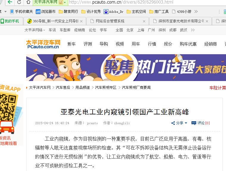 據(jù)深圳市亞泰光電技術(shù)有限公司李工透漏, SIE系列超清工業(yè)視頻內(nèi)窺鏡目前已經(jīng)在國(guó)內(nèi)幾家知名的航空、電力公司試用,并受到了使用者的一致好評(píng)。在產(chǎn)品價(jià)格方面,李工表示該款產(chǎn)品研制的初衷就是與國(guó)外高端品牌競(jìng)爭(zhēng),所以價(jià)格方面會(huì)高于國(guó)內(nèi)的大多數(shù)工業(yè)內(nèi)窺鏡產(chǎn)品,但相比國(guó)外產(chǎn)品,價(jià)格優(yōu)勢(shì)就非常的明顯,所以,整體來(lái)看是一款性價(jià)比非常高的產(chǎn)品。而且對(duì)于產(chǎn)品的質(zhì)量,公司非常的重視,在老化試驗(yàn)、跌落試驗(yàn)等測(cè)試階段做了很多的工作,也非常的歡迎廣大用戶朋友提前預(yù)約試用。當(dāng)然,自古“王婆賣(mài)瓜、自賣(mài)自夸”,我們的產(chǎn)品好不好,只要您用過(guò)就知道!