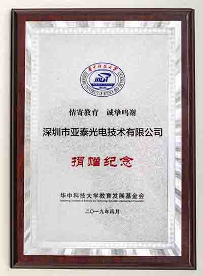華中科技大船海學院60周年之際,亞泰光電向學院捐贈