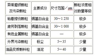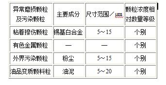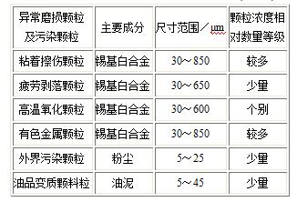 表2 油箱底部潤滑油磨損顆粒和污染雜質(zhì)特性