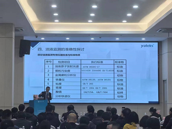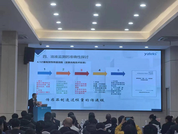 此次會議通過專題報告,如油液傳感器應(yīng)用實踐、油品分析儀研發(fā)、油液監(jiān)測大數(shù)據(jù)、設(shè)備潤滑等不同領(lǐng)域維度和技術(shù)交流以及參觀學(xué)習(xí)的形式舉行,深圳市亞泰光電技術(shù)有限公司鄭總在會上做了油液監(jiān)測的準(zhǔn)確性探討的專題報告,報告從金屬磨粒分析儀、原子發(fā)射光譜、顆粒污染度等部分油液監(jiān)測專用儀器標(biāo)準(zhǔn)與校準(zhǔn)物質(zhì);油液傳感器計量有效性傳遞流程等維度做了闡述。